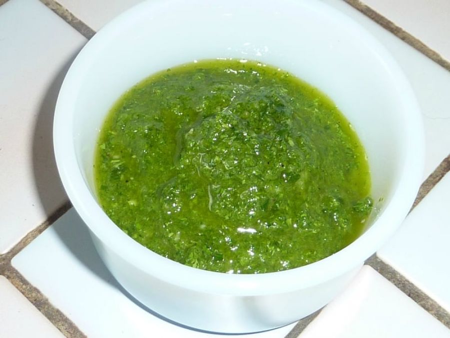 1Puree everything untill you have a smooth liquid and serve. Adjust amount of oil, salt to taste. Serve in a small bowl.