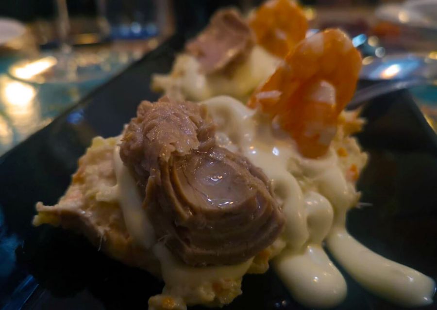 Add some bread an a wonderful dry white wine to enjoy to classic tapa.Suggestions and variations Add some peas and red beats. Always use fresh vegtables as canned vegtables are too mushy and wet. Important cut the cubes fine and let the potatoes cool down. Better to make one day in advance. A little extra add a little of garlic to the mayonaise. If the mayonaise is too thick add vinegar and when too thin add more oil.