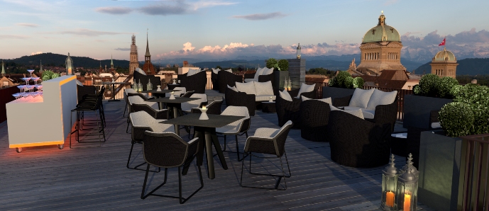One of the few rooftop terasses in Bern. You look over the city and enjoy the spectecular view. The menu changes relatively frequently. The food is good for a 5 start hotel. The wine list is decent and has something for every one. The 1988 Pommery champagne is fabulous. Service is excellent and you will enjoy your visit. I love the mini burgers and go and discover their BBQ options in summer. A gem to be honest absolutely wonderful.